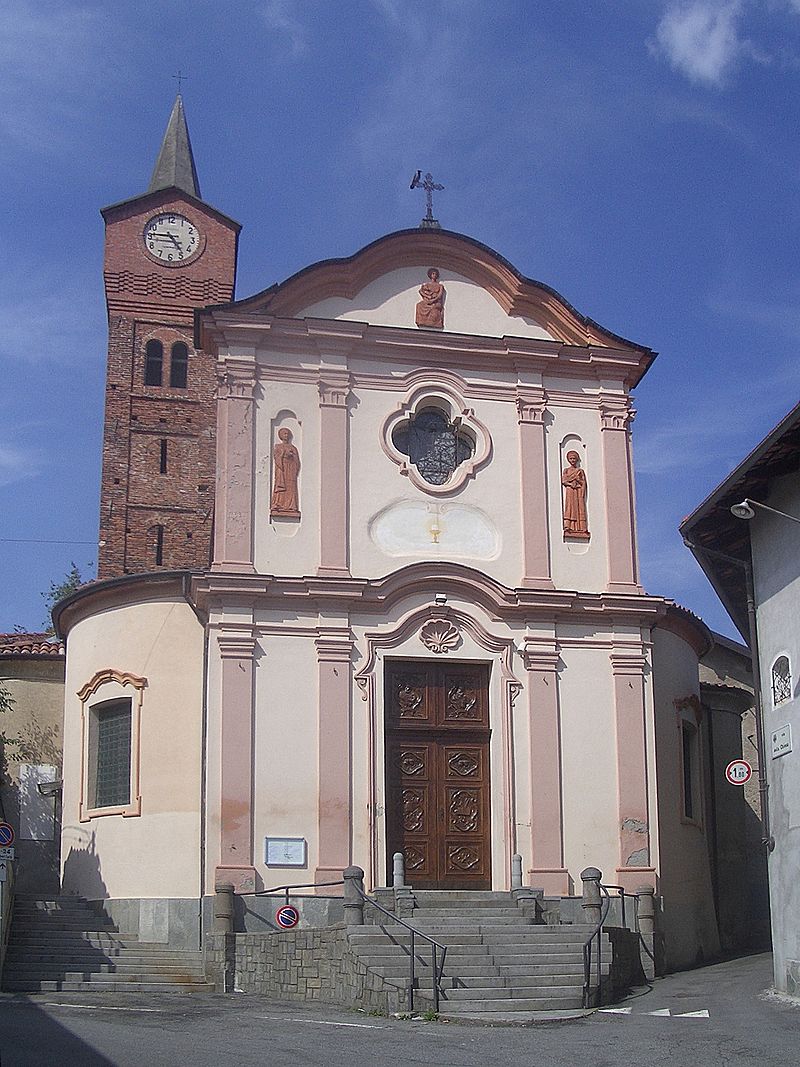 La primitiva parrocchiale risalente al 1300, si trova presso il cimitero e fu ricostruita nel 1894 da Camillo Boggio di San Giorgio in stile neo-medioevale, seconda la sensibilità del tempo. L'attuale Parrocchiale posta in ottima posizione, nella parte più alta del paese, fu eretta a parrocchia nel 1760. Di linee gradevoli, con un imponente campanile e un bel portale in noce, conserva sull'altar maggiore una grande tela, opera del pittore Gorini di Caluso (1843) e una buona via Crucis. I registri parrocchiali iniziano dal 1577.
